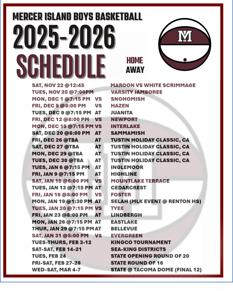 The Mercer Island Boys Basketball Booster Club (MIBBBC) is committed to maintaining high standards and special experiences for our student-athletes. With the support of fans like you, we offer exceptional year-round player development opportunities. We provide training for our coaches, giving them the best tools to mentor our student-athletes. We purchase gear and equipment to support the players. Most importantly, we provide scholarships to ensure that a family’s financial circumstance is never an obstacle to playing the game these boys love.